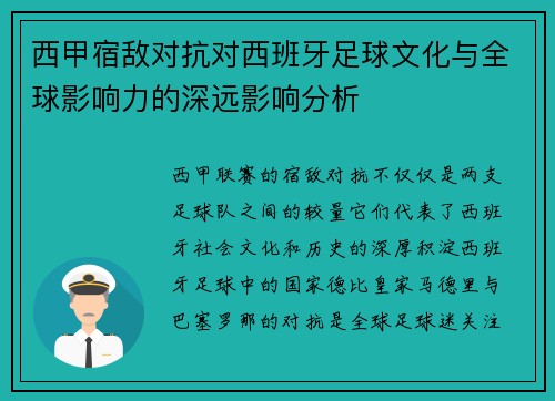 西甲宿敌对抗对西班牙足球文化与全球影响力的深远影响分析